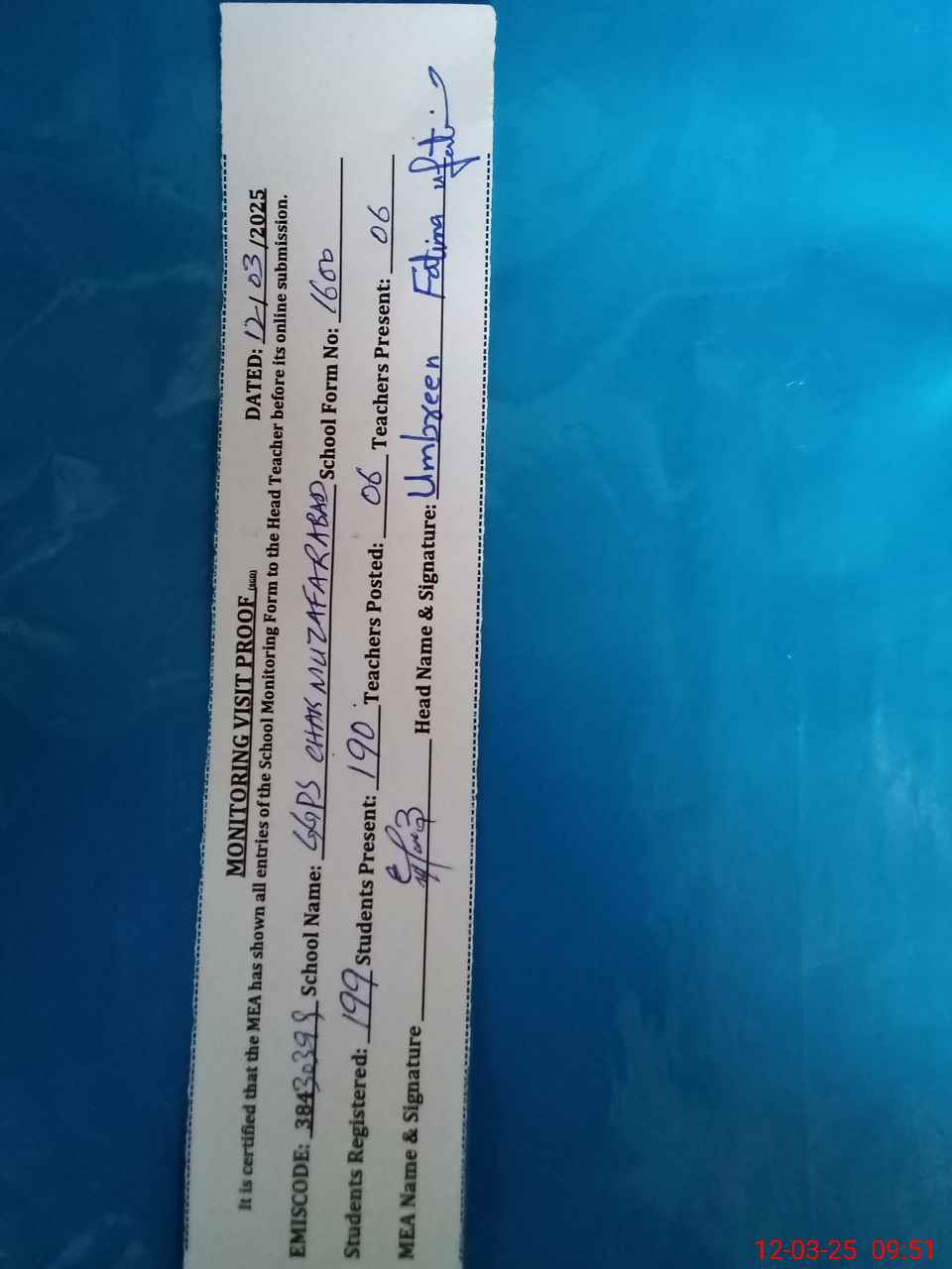 | EMIS Code: 38430399 | Name of School: GGPS MUZAFAR ABAD | |||