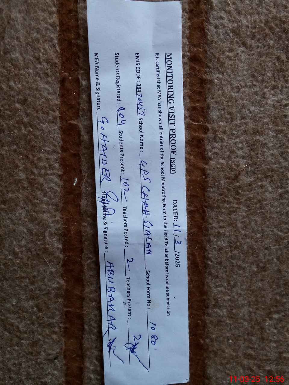 | EMIS Code: 38470457 | Name of School: GPS CHAH SIALAN | |||