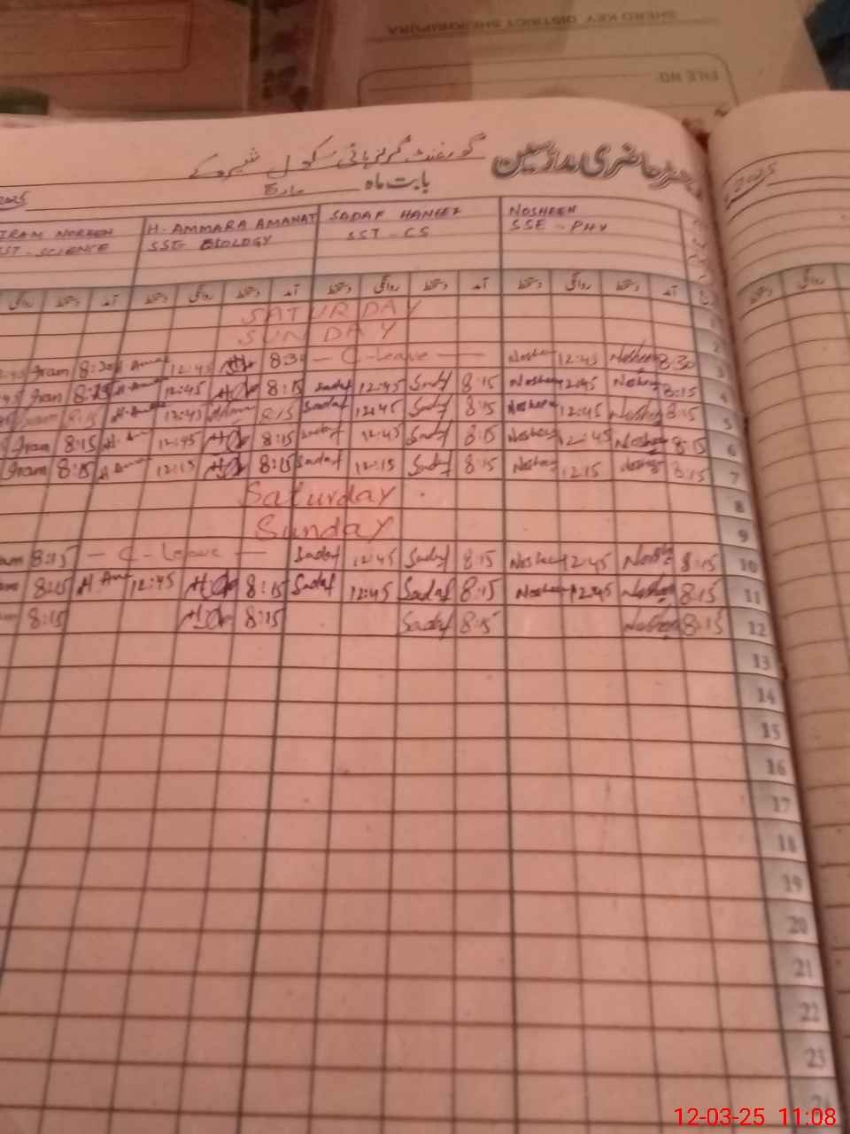 | 34**** | Sh**** Ya**** | PST | Regular | 0 | 0 | 0 | 0 | 0 | 0 | 0 | 0 | 0 | Exam Duty |