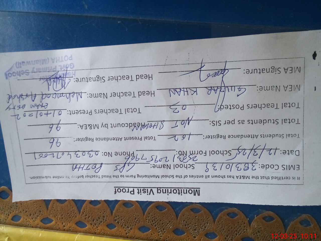 | EMIS Code: 38310139 | Name of School: GPS POTHA | |||