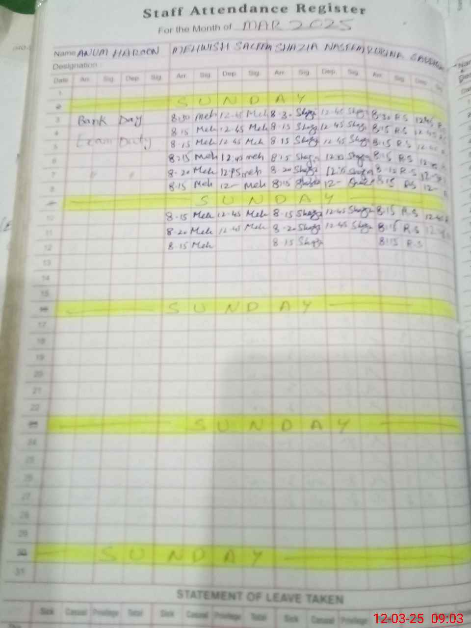 | 35**** | Qa**** Sh**** | EST | Regular | 0 | 0 | 0 | 0 | 0 | 0 | 0 | 0 | 0 | Exam Duty |