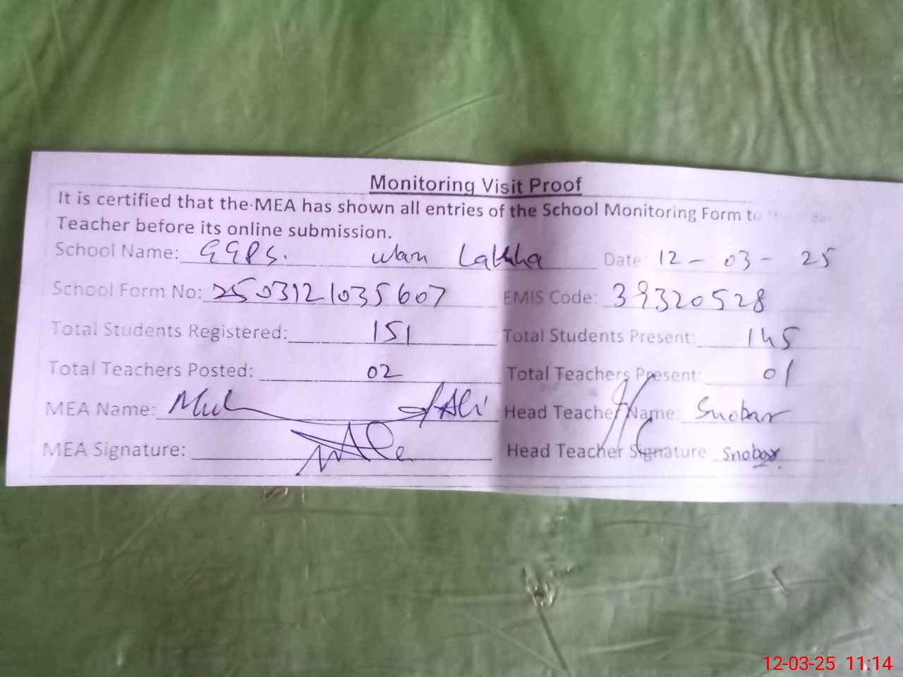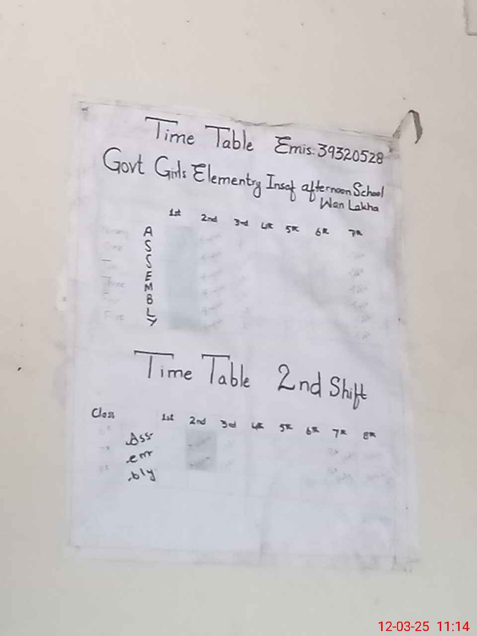 | EMIS Code: 39320528 | Name of School: GGPS WAN LAKHA | |||