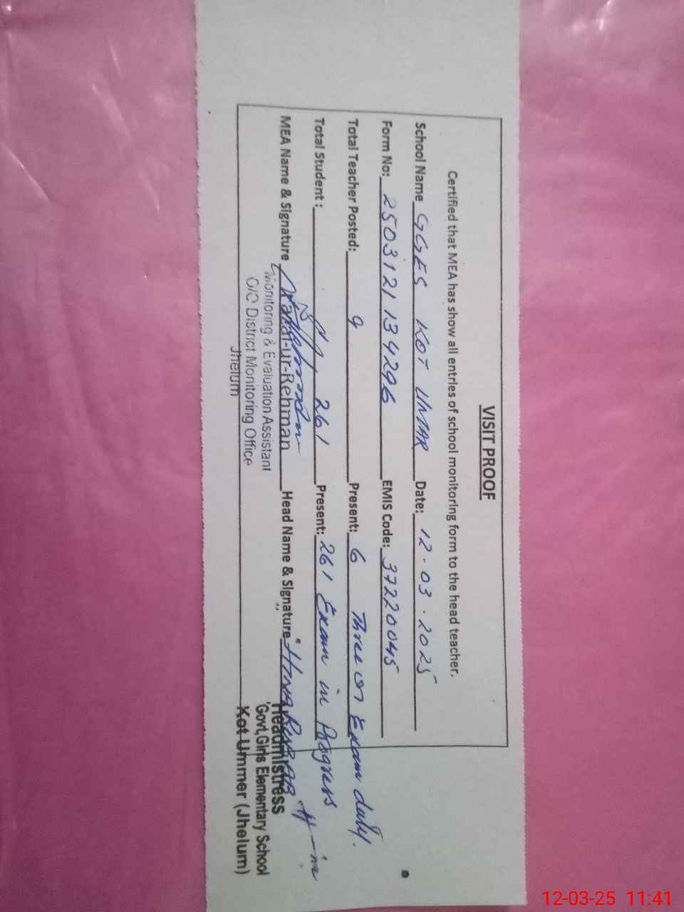 | EMIS Code: 37220045 | Name of School: GGES KOT UMMAR | |||