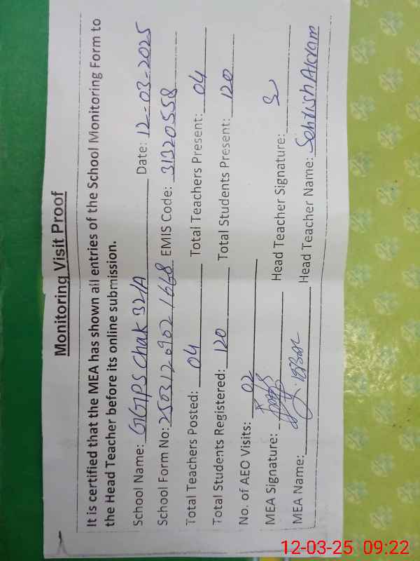 | EMIS Code: 31320558 | Name of School: GGPS CHAK 32/A | |||