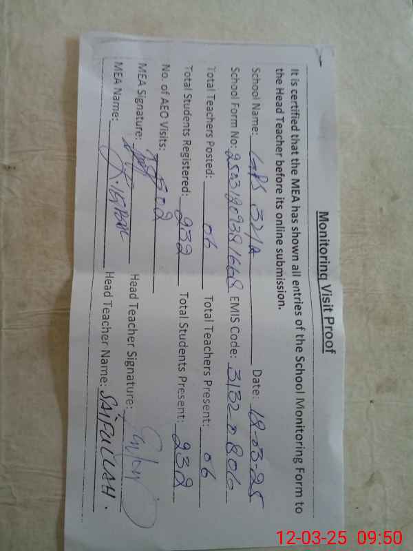 | EMIS Code: 31320806 | Name of School: GPS CHAK 32/A | |||