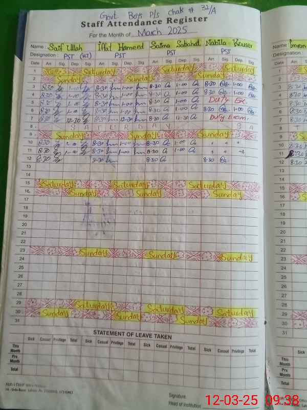 | Name: SA**** UL**** Designation: (School Headmaster's/Headmistress's) PST Phone/Cell Number: 03**** |