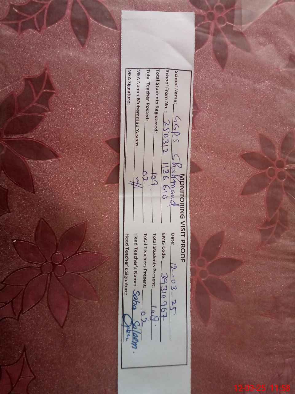 | EMIS Code: 39310967 | Name of School: GGPS SHAHMAD | |||