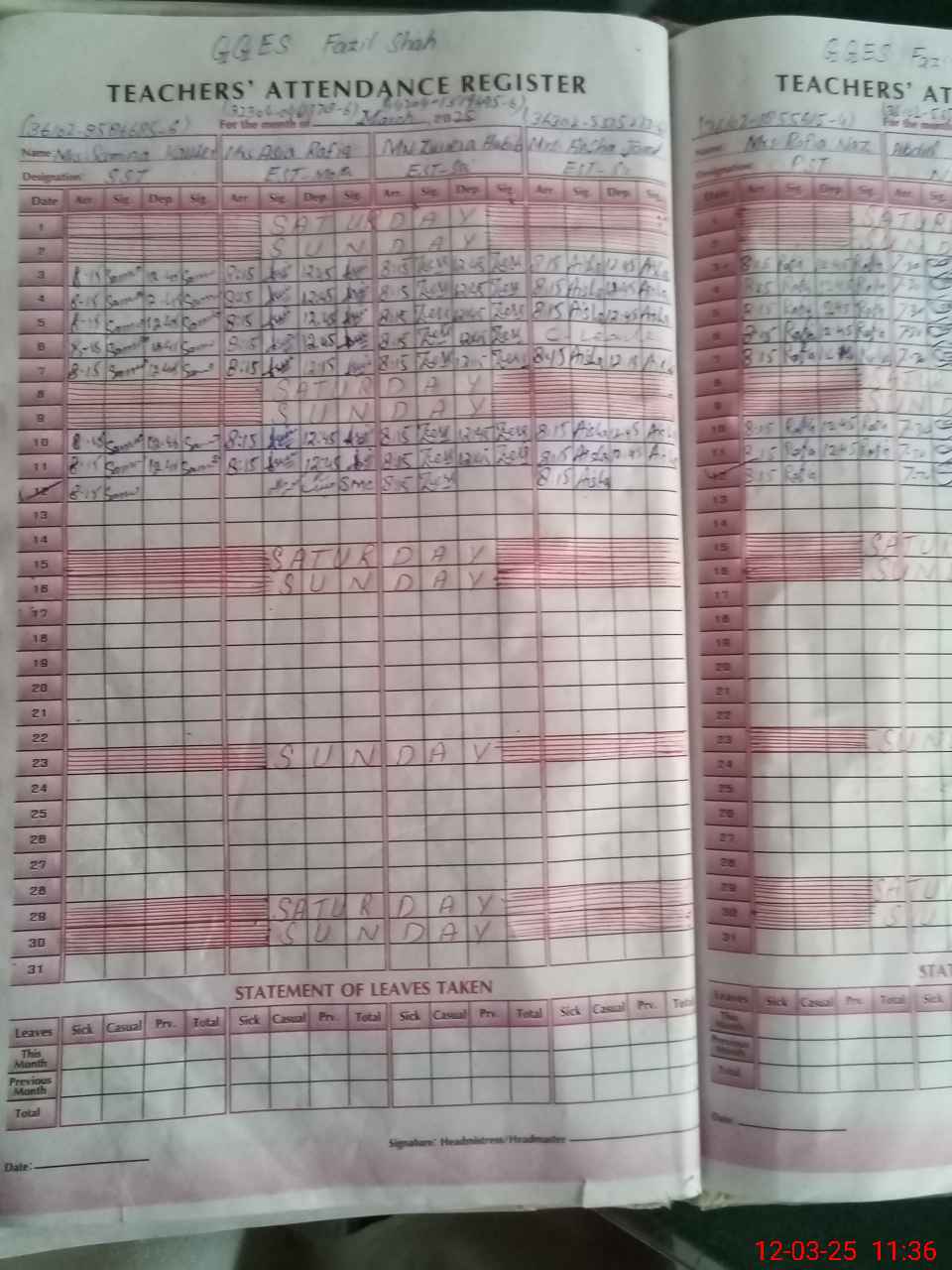 | Leave | Duty | Absent | Maternity | Medical | Ex- Pak |