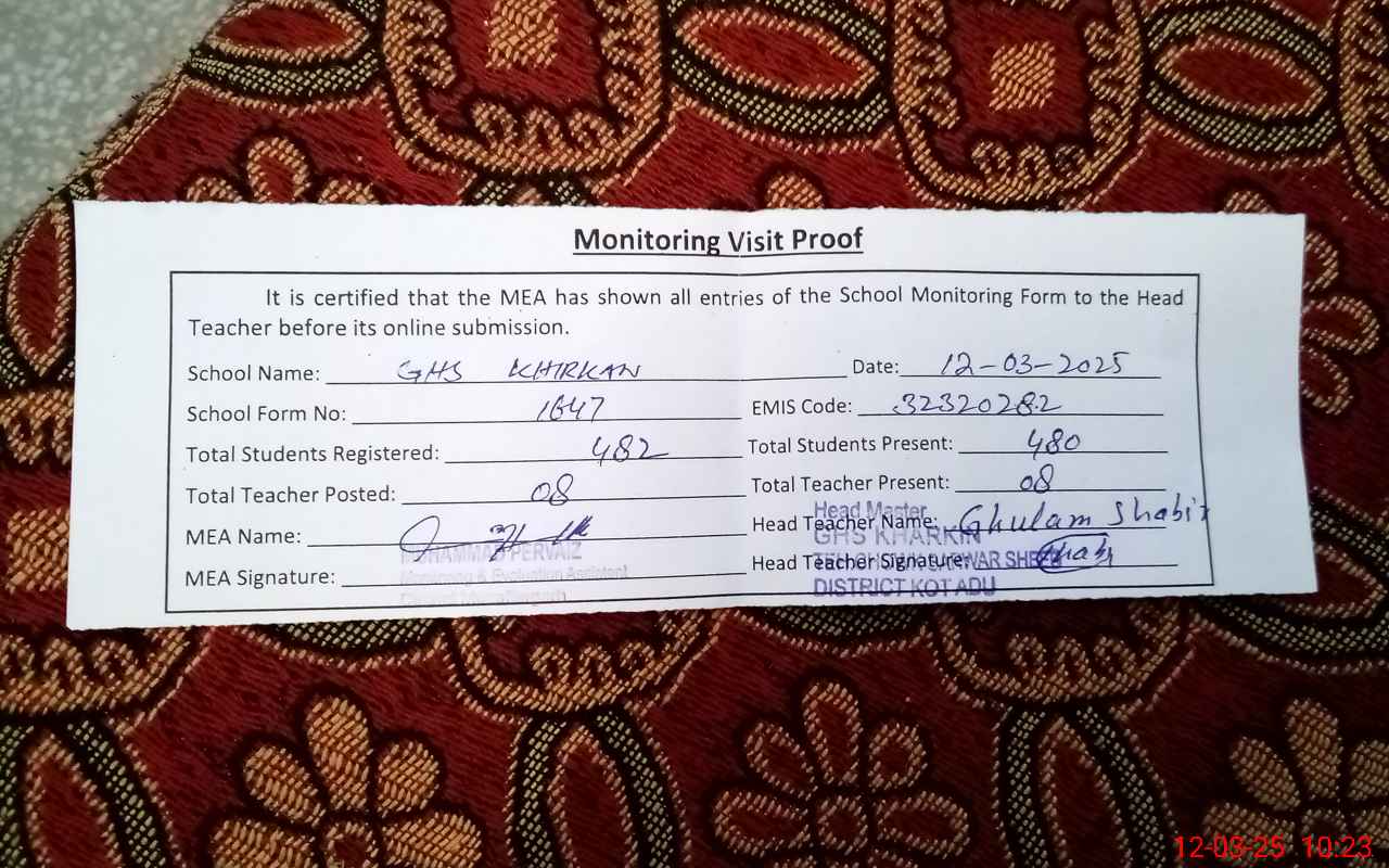 | EMIS Code: 32320282 | Name of School: GHS KHARKIN | |||