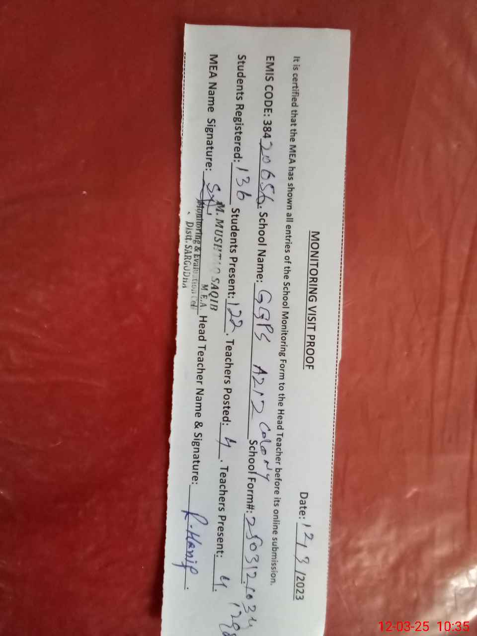 | EMIS Code: 38420656 | Name of School: GGPS AZIZ COLONY | |||