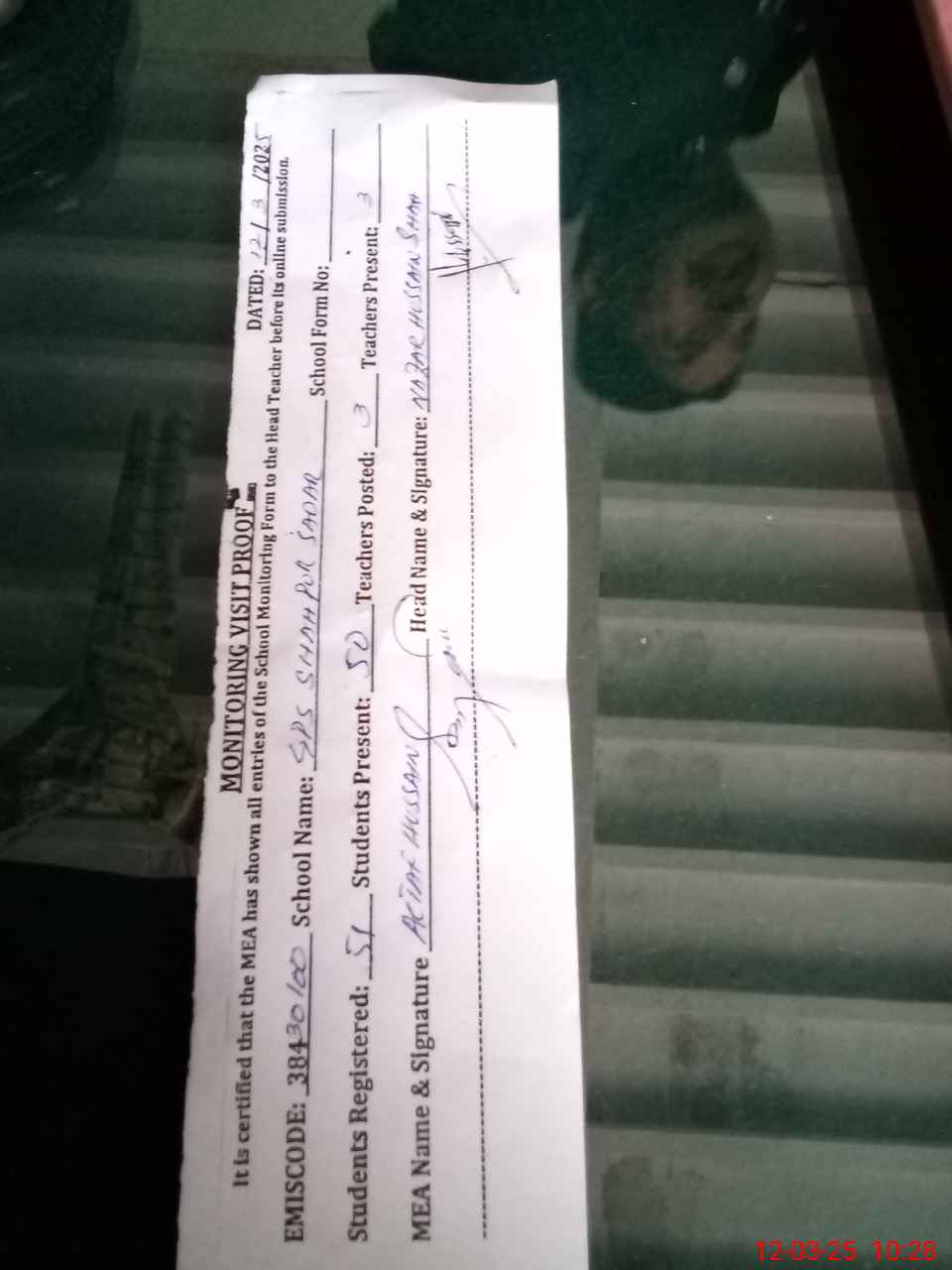 | EMIS Code: 38430100 | Name of School: GPS SHAH PUR SADAR | |||