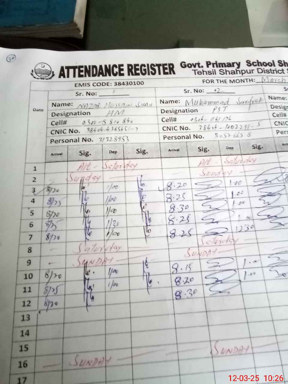 | Name: NA**** HU**** SH**** Designation: (School Headmaster's/Headmistress's) PST Phone/Cell Number: 03**** |