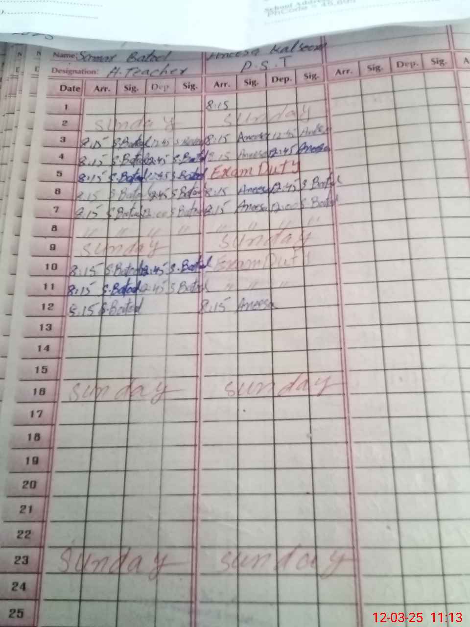 | Name: SA**** BA**** Designation: (School Headmaster's/Headmistress's) PST Phone/Cell Number: 03**** |