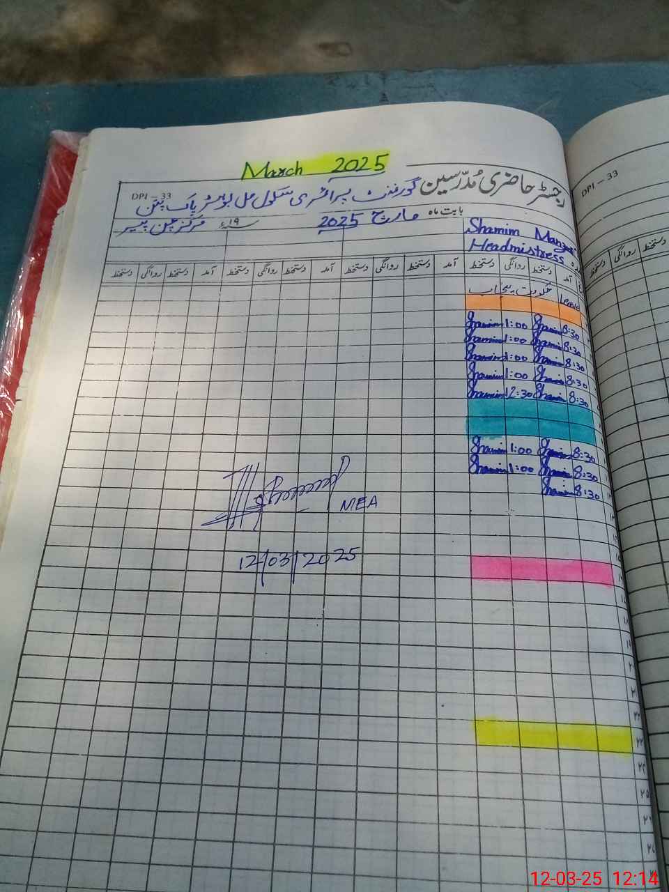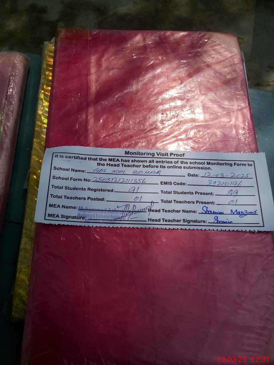 | Attendance Register | Head Teacher | MEA with School | Visit Proof |