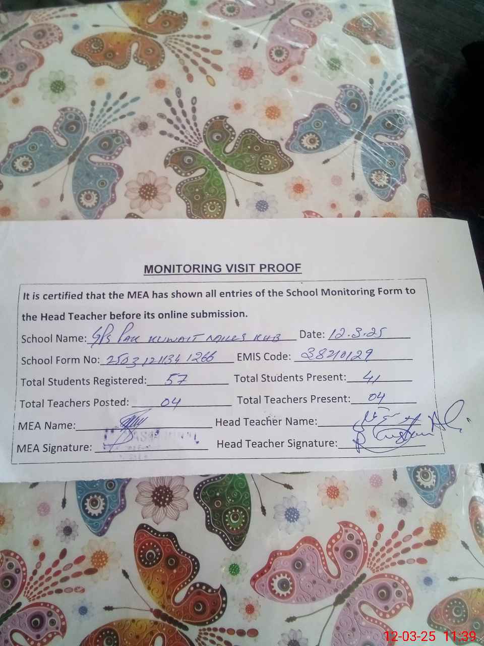 | EMIS Code: 38210129 | Name of School: GPS PAK KUWAIT MILLS KHUSHAB | |||