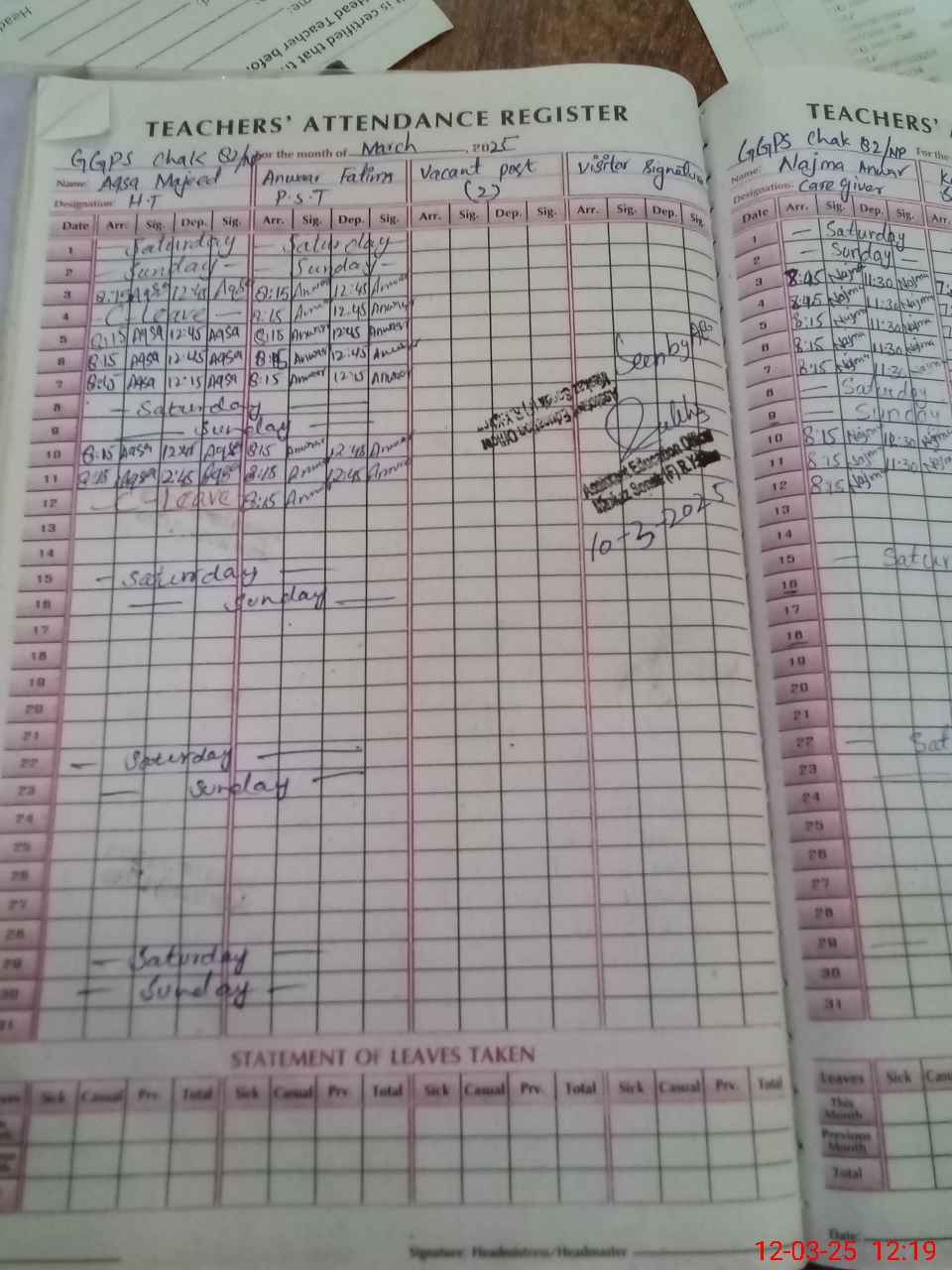 | 31**** | Aq**** Ma**** | 1 | 2 | 0 | 0 | 0 | 0 | 0 | 0 | 0 | 2 | Absent (Un-Authorized) | |