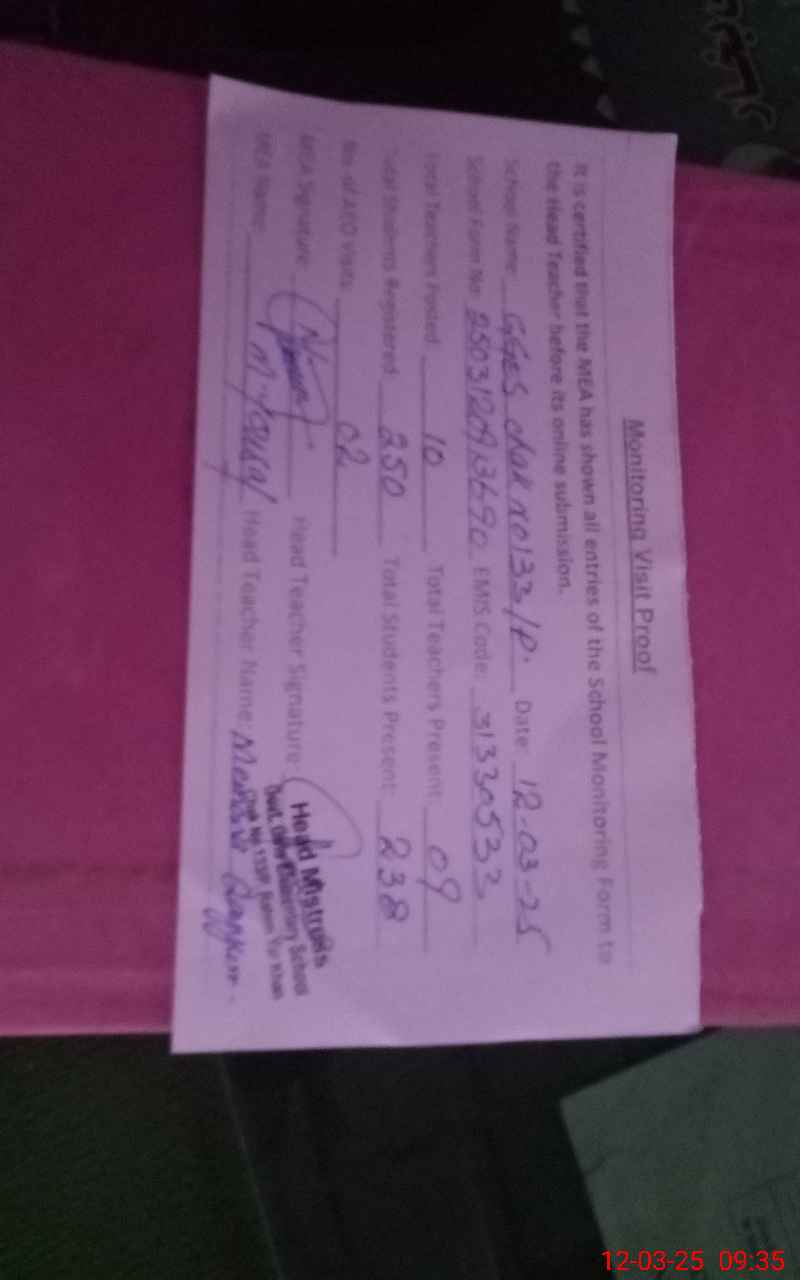 | Attendance Register | Head Teacher | MEA with School | Visit Proof |