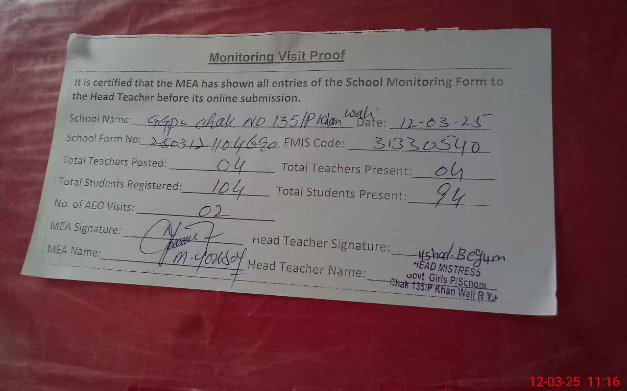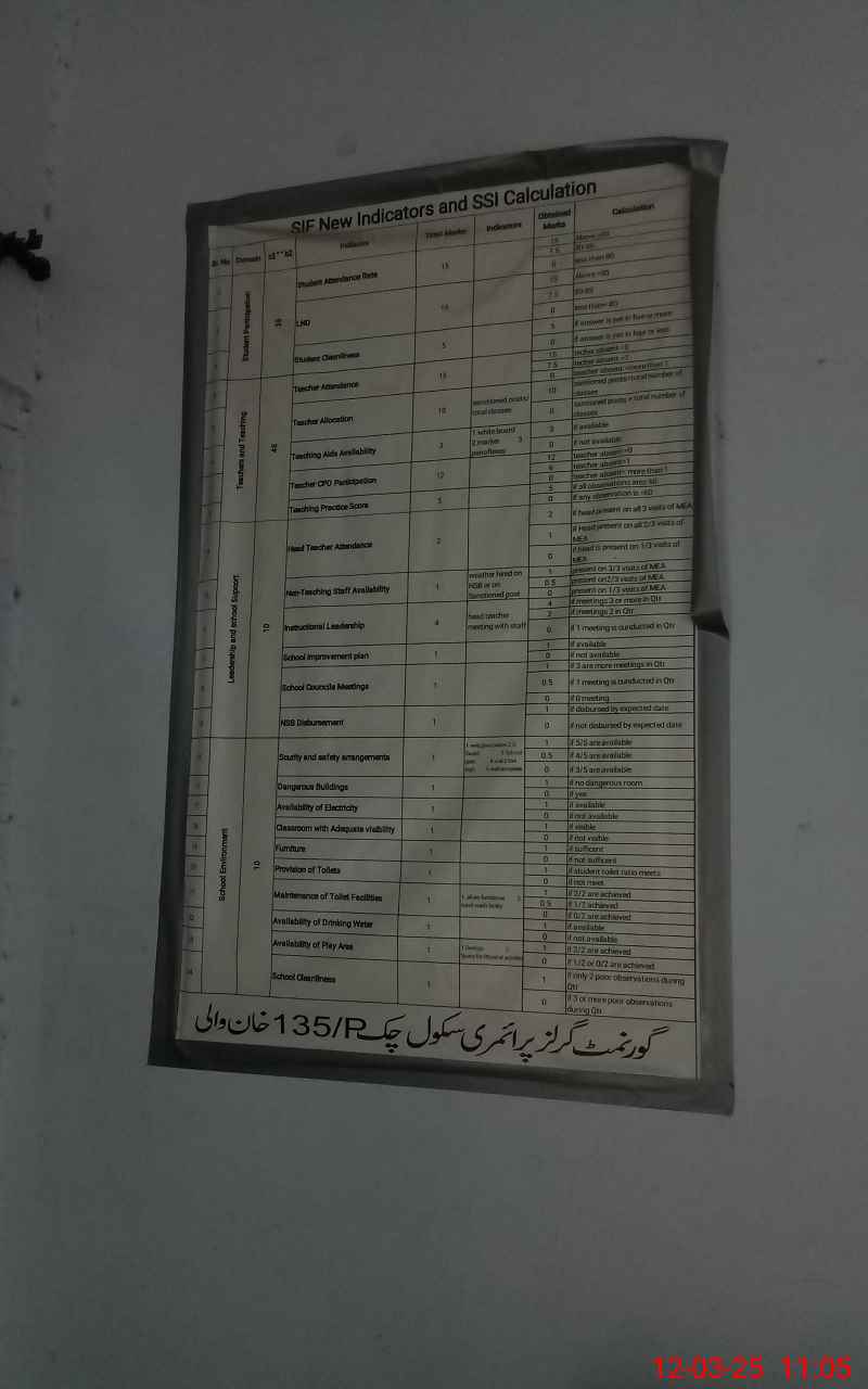 | EMIS Code: 31330540 | Name of School: GGPS CHAK 135/P KHAN WALI | |||