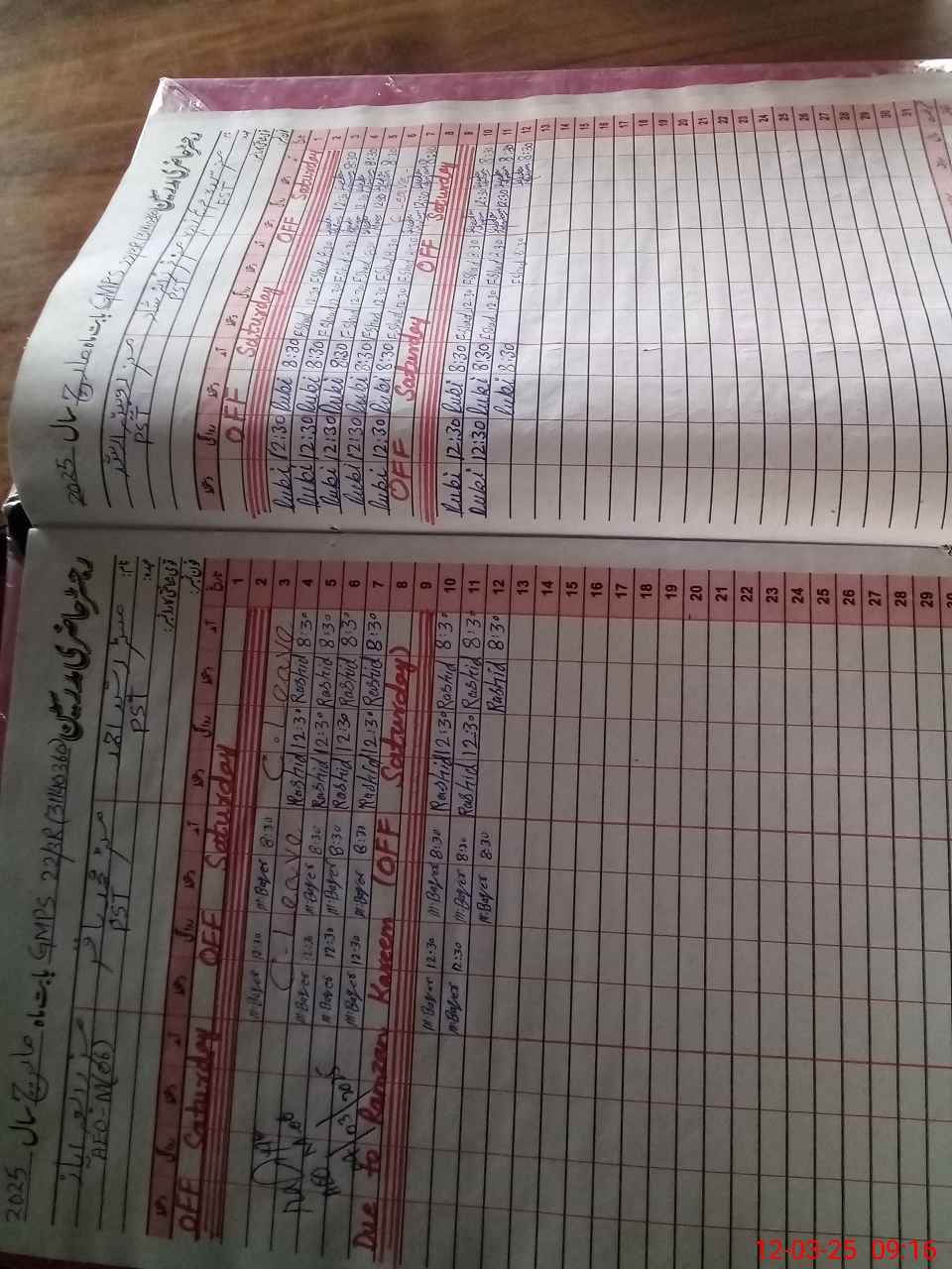 | CNIC | Full Name | Designation | R/C | Absence During Last Calender Month |