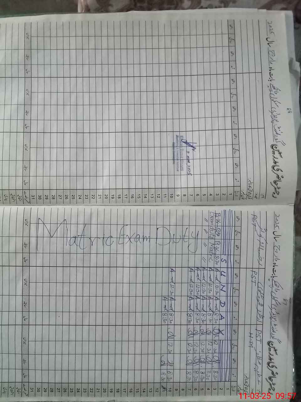 | 35**** | Ru**** Ko**** | PST | Regular | 0 | 0 | 0 | 0 | 0 | 0 | 0 | 0 | 0 | Exam Duty |