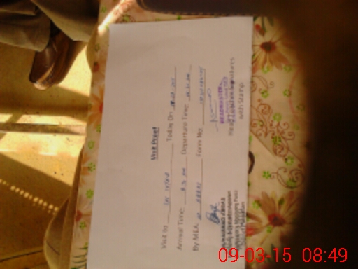 | Monitoring Date: 09-03-2015 | Start Time: 09-03-2015 08:30 AM | End Time: 09-03-2015 08:50 AM | Name of MEA: Mu**** Ab**** | |