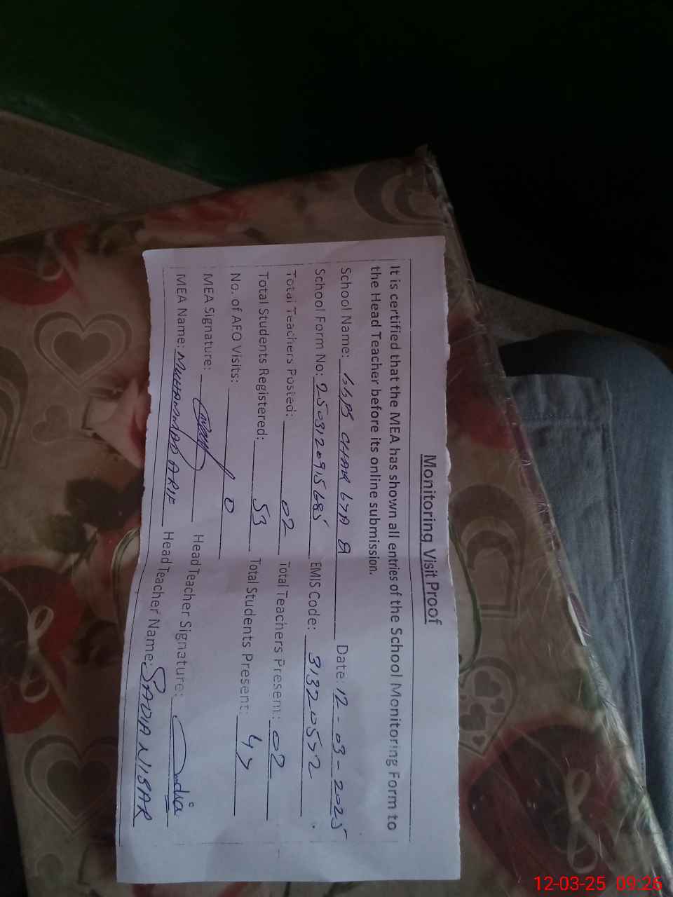| EMIS Code: 31320572 | Name of School: GGPS 67/A QADEEM | |||