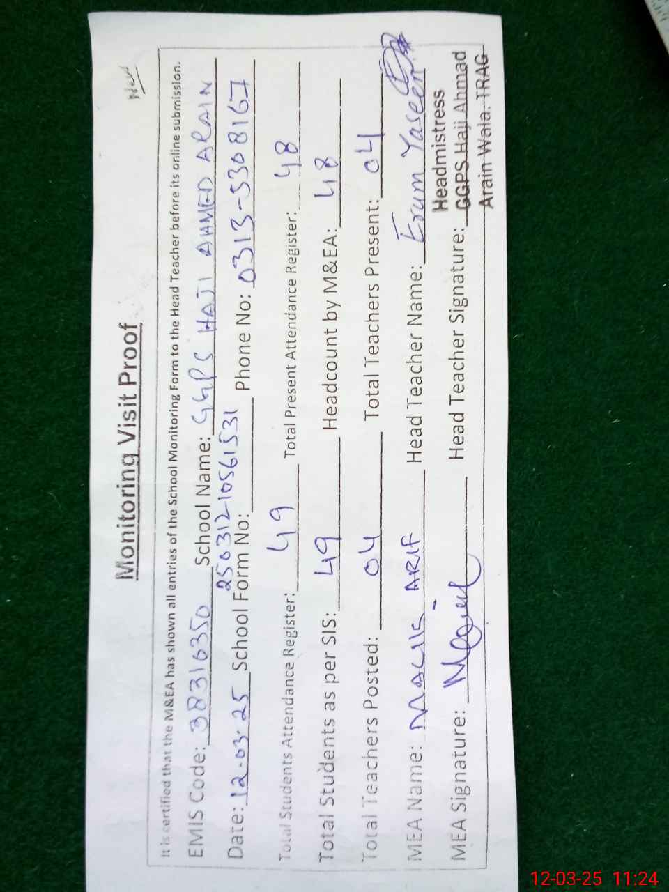 | EMIS Code: 38310350 | Name of School: GGPS HAJI AHMED ARAIN WALA | |||