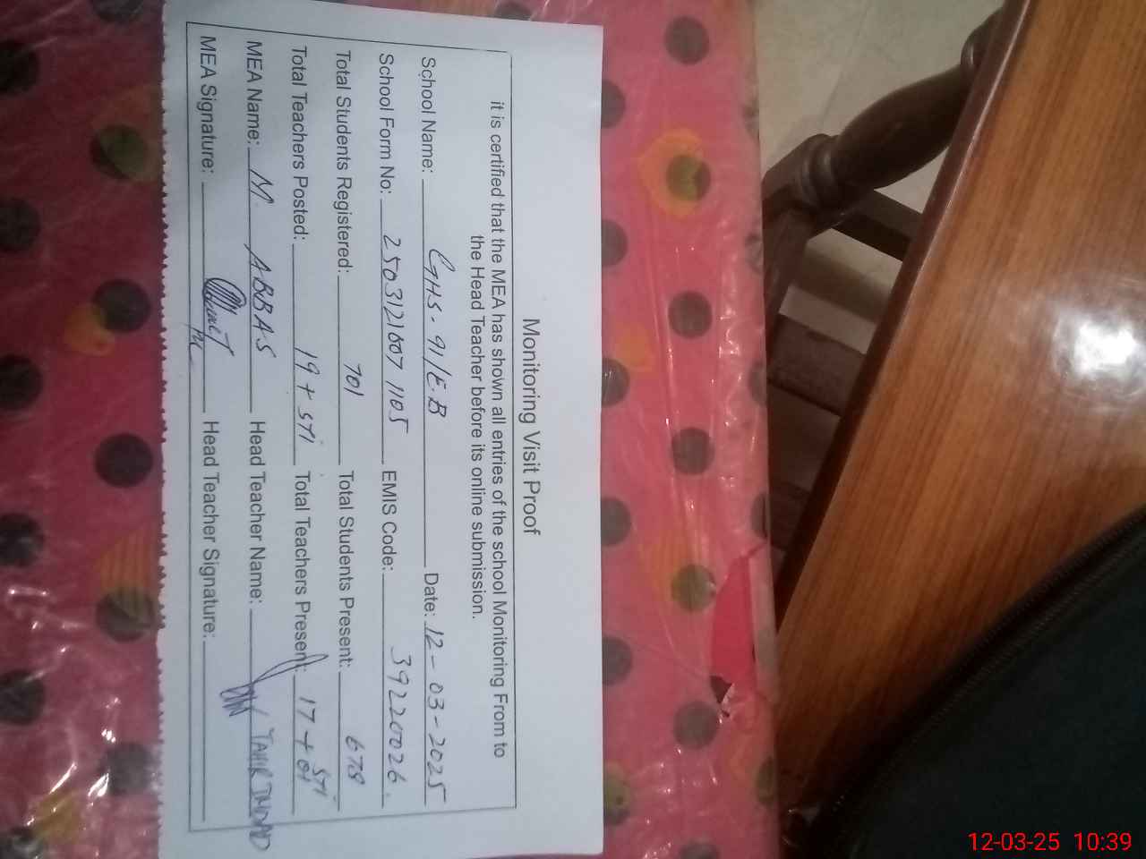| EMIS Code: 39220026 | Name of School: GHS 91/EB | |||