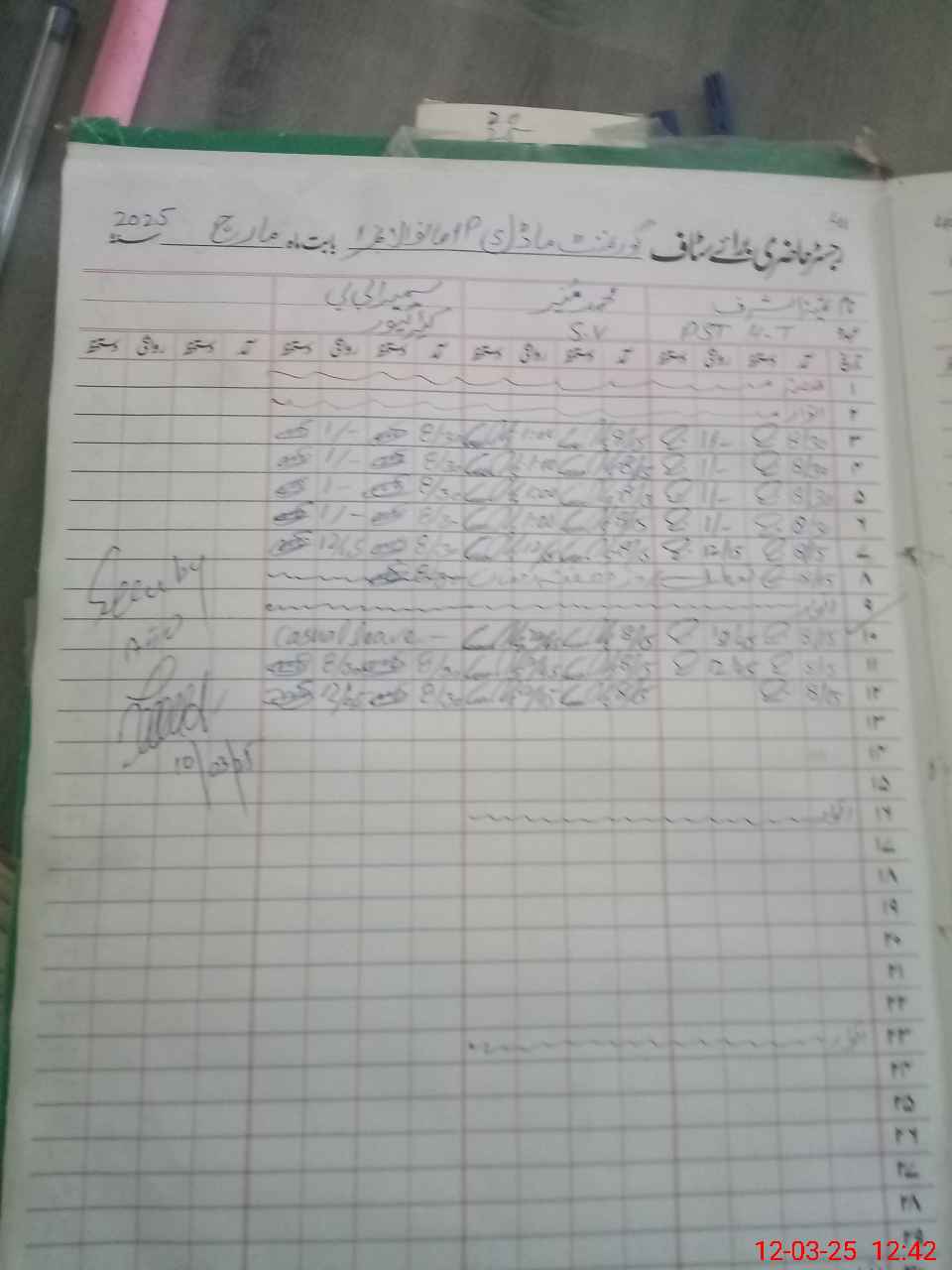| CNIC | Full Name | Designation | R/C | Absence During Last Calender Month |
