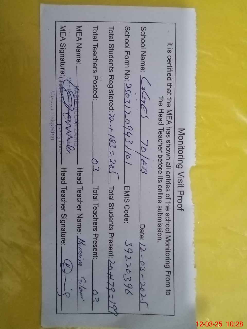 | EMIS Code: 39220396 | Name of School: GGES 70/EB | |||