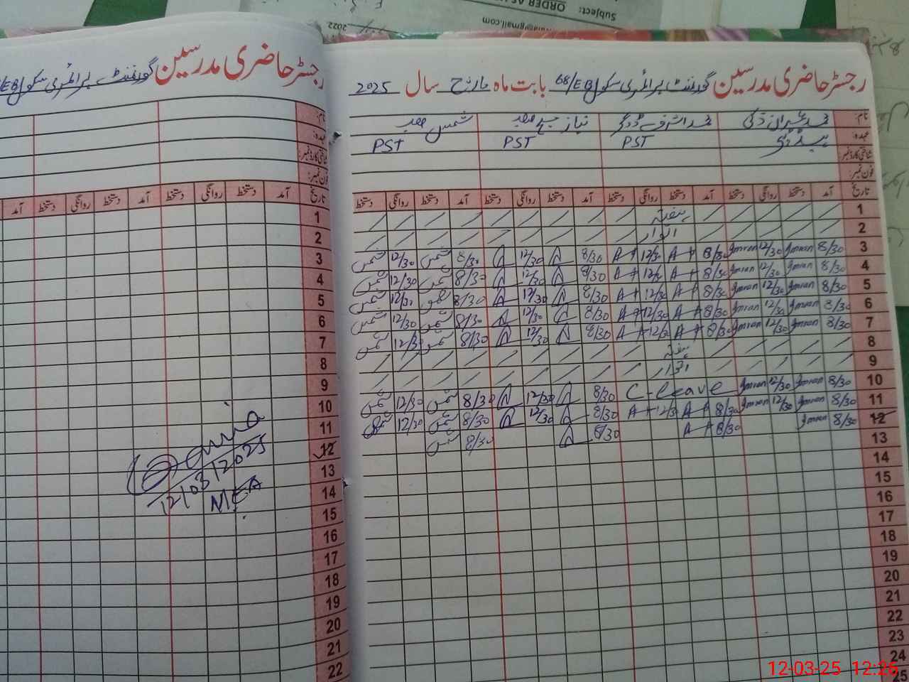 | Name: Mu**** IM**** Designation: (School Headmaster's/Headmistress's) PST Phone/Cell Number: 03**** |