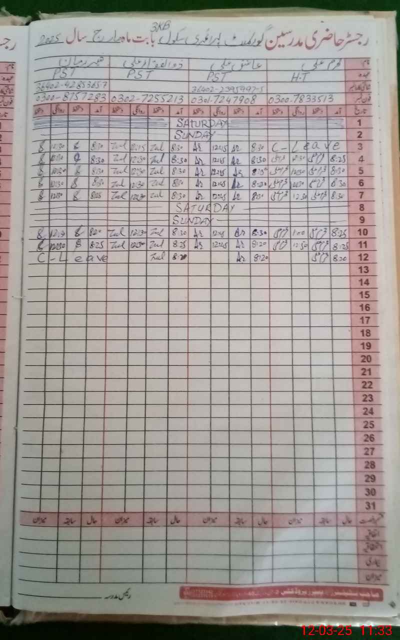 | Name: AS**** AL**** Designation: (School Headmaster's/Headmistress's) PST Phone/Cell Number: 03**** |