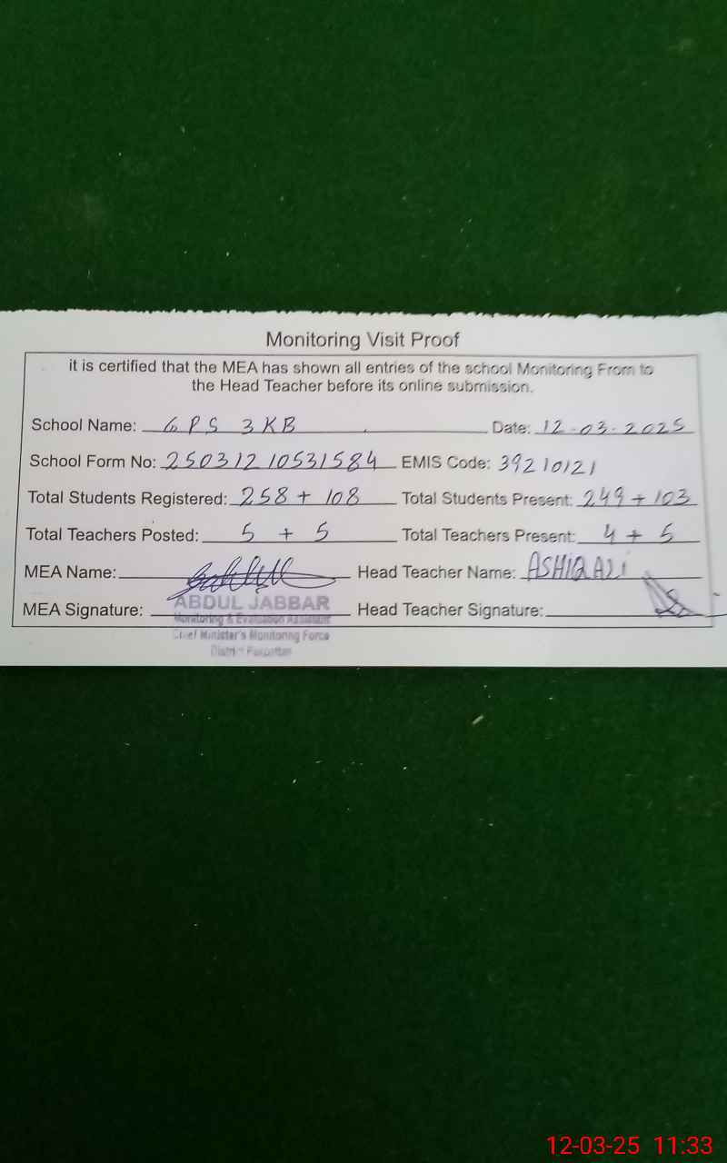 | EMIS Code: 39210121 | Name of School: GPS 3 KB | |||