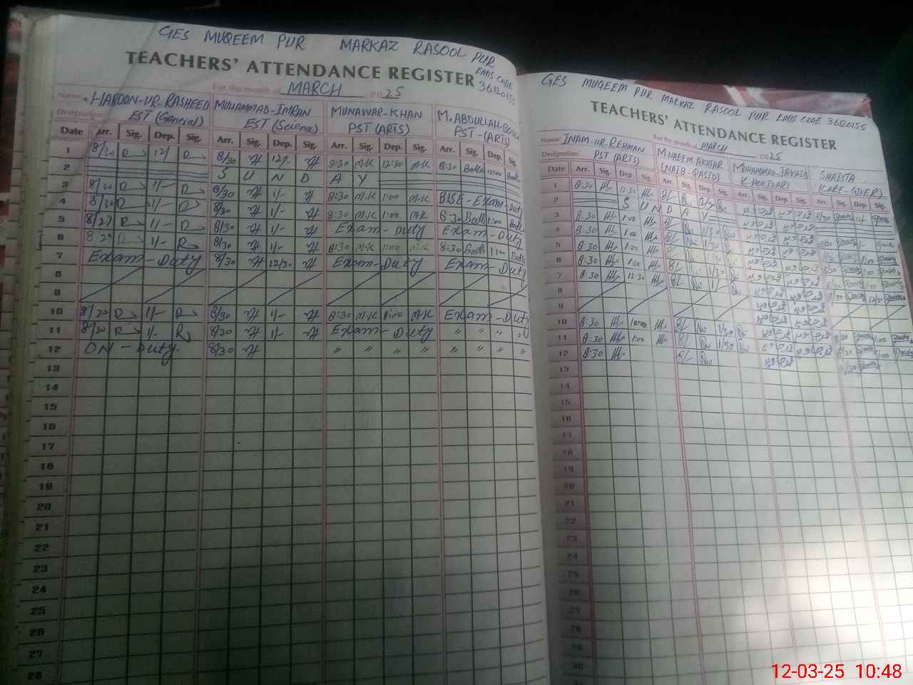 | 36**** | Mu**** Kh**** | PST | Regular | 0 | 0 | 0 | 0 | 0 | 0 | 0 | 0 | 0 | Exam Duty |