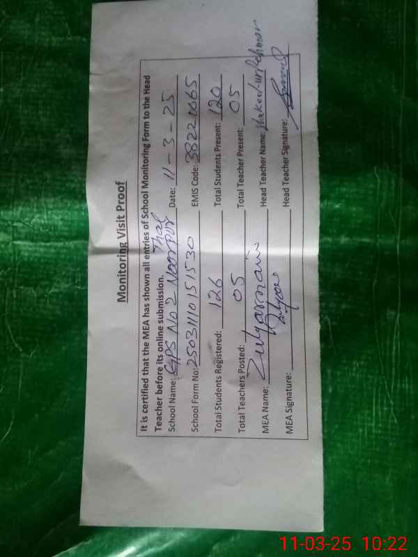 | EMIS Code: 38220065 | Name of School: GPS NO. 2 NOOR PUR THAL | |||