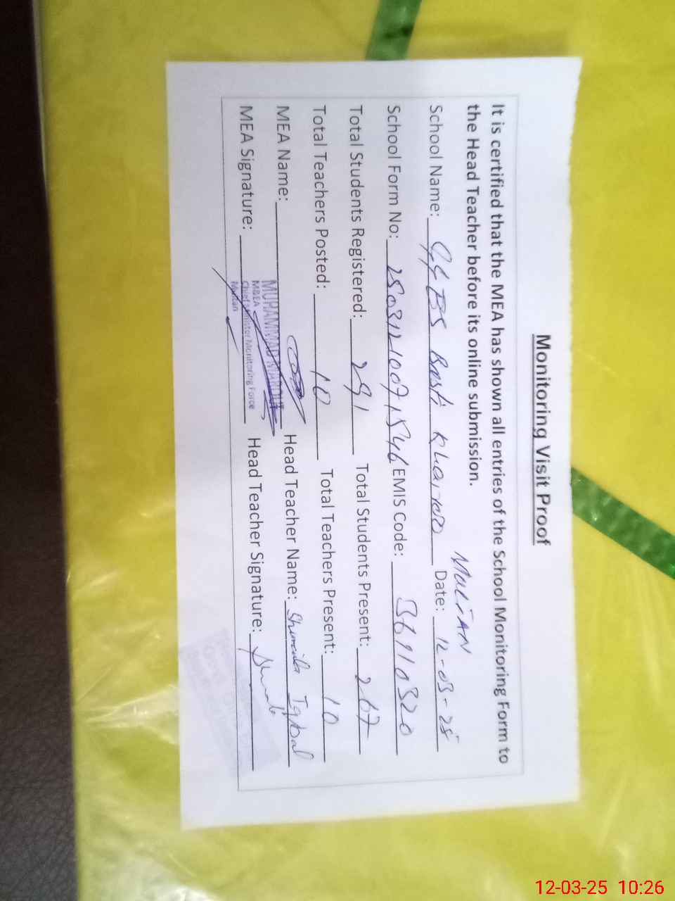 | EMIS Code: 36110320 | Name of School: GGES BASTI KHAIROO NEAR MUZAFFARABAD CANAL MULTAN | |||