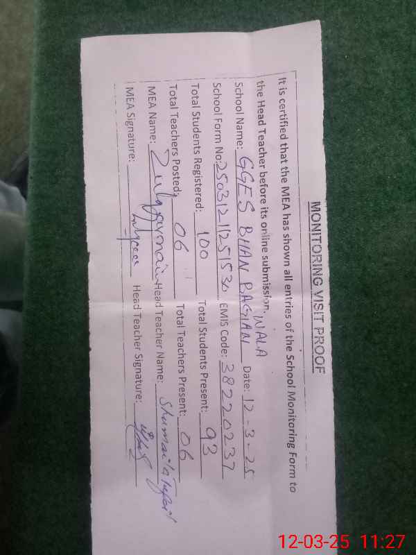 | EMIS Code: 38220237 | Name of School: GGES BHAN BAGIAN WALA | |||