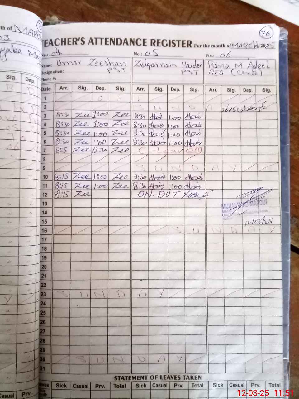| 36**** | Mu**** Ju**** | PST | Regular | 0 | 0 | 0 | 0 | 0 | 0 | 0 | 0 | 0 | Exam Duty |