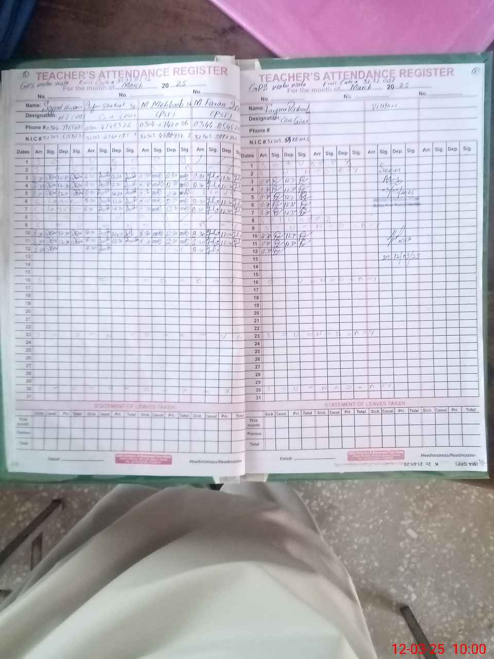 | Name: Sa**** Hu**** Designation: (School Headmaster's/Headmistress's) PST Phone/Cell Number: 03**** |