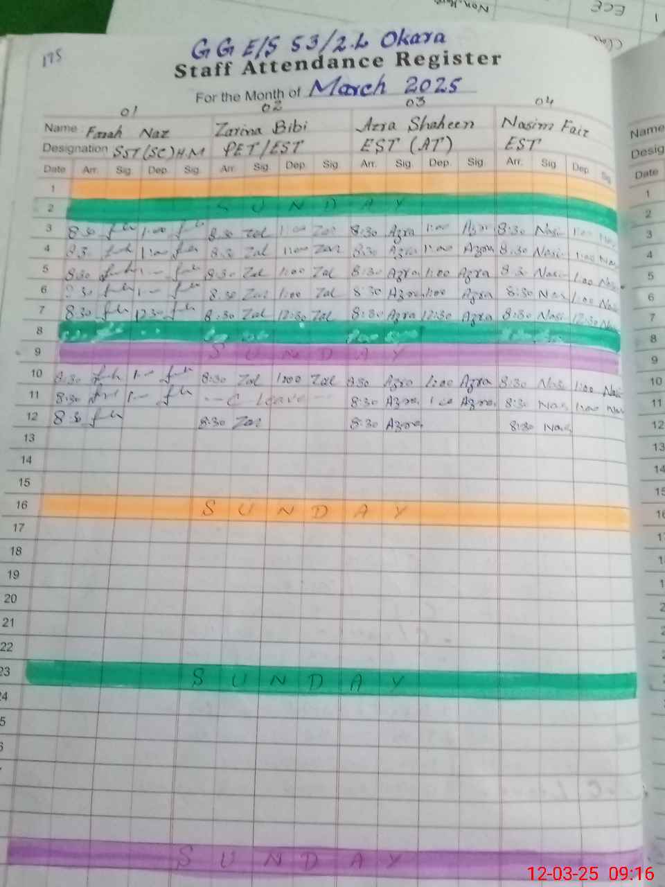 | District: OKARA | Tehsil: OKARA | Markaz: 4/4.L-FEMALE | Level: Middle | |