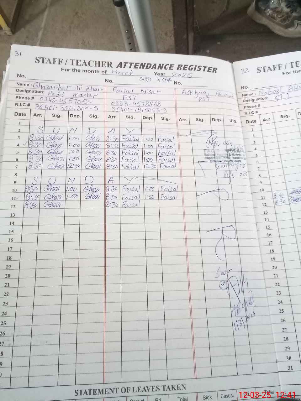 | Name: Gh**** Al**** Kh**** Designation: (School Headmaster's/Headmistress's) PST Phone/Cell Number: 03**** |