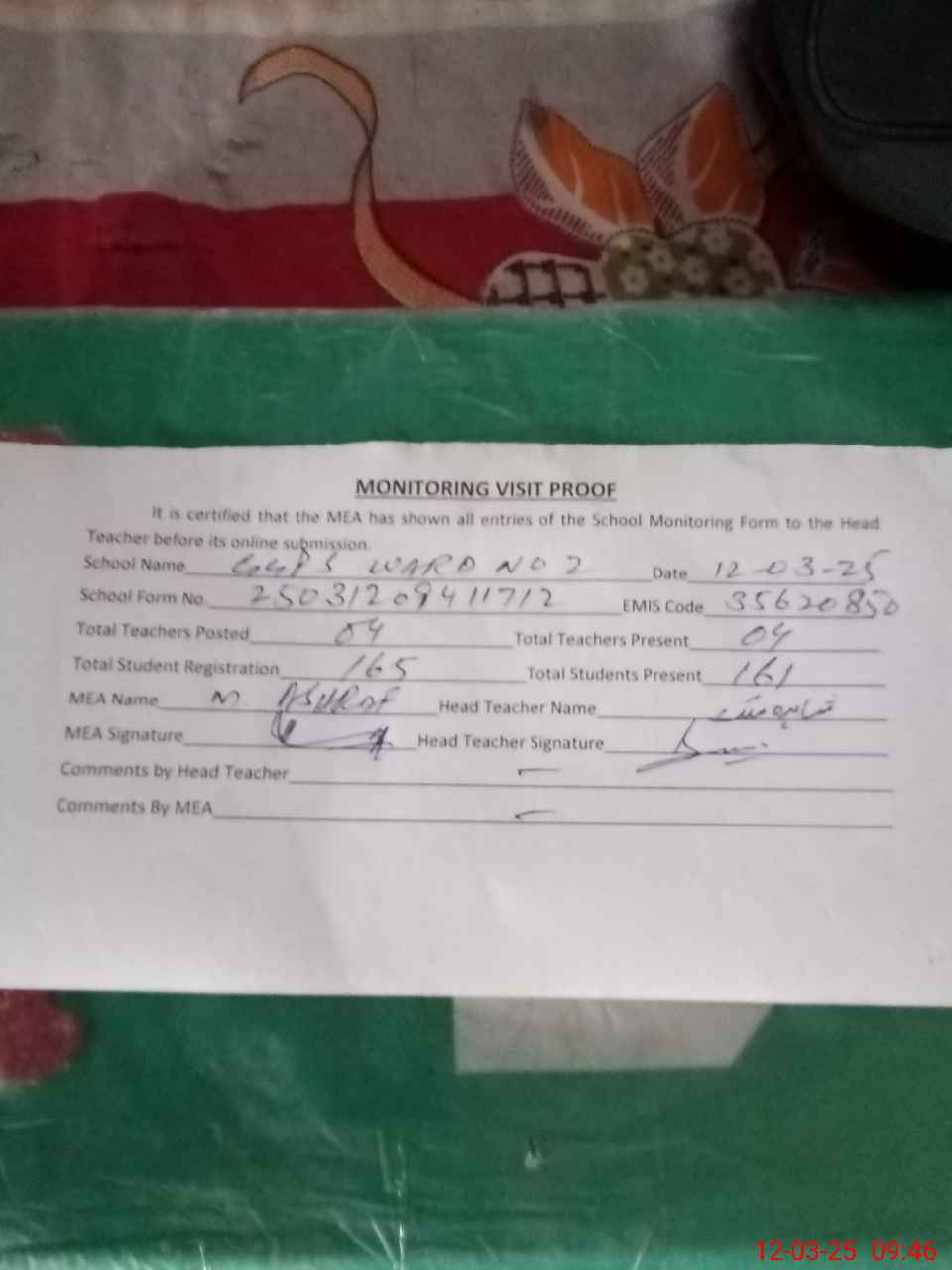 | EMIS Code: 35620850 | Name of School: GGPS WARD NO.2 THATHA ASIYA | |||