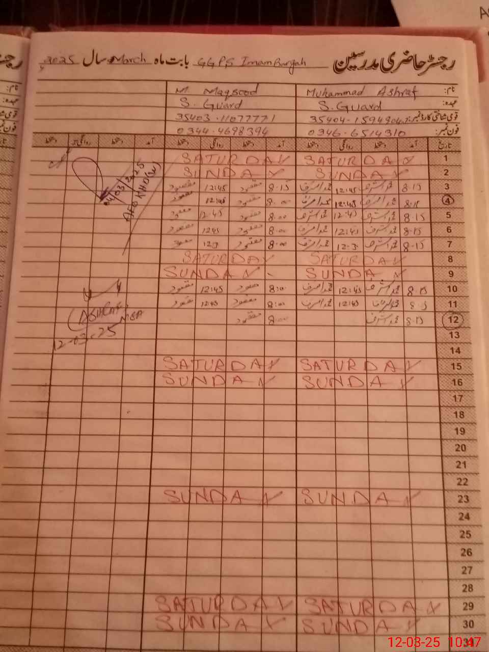 | 34**** | Ab**** Ha**** | PST | Regular | 0 | 0 | 0 | 0 | 0 | 0 | 0 | 0 | 0 | Exam Duty |