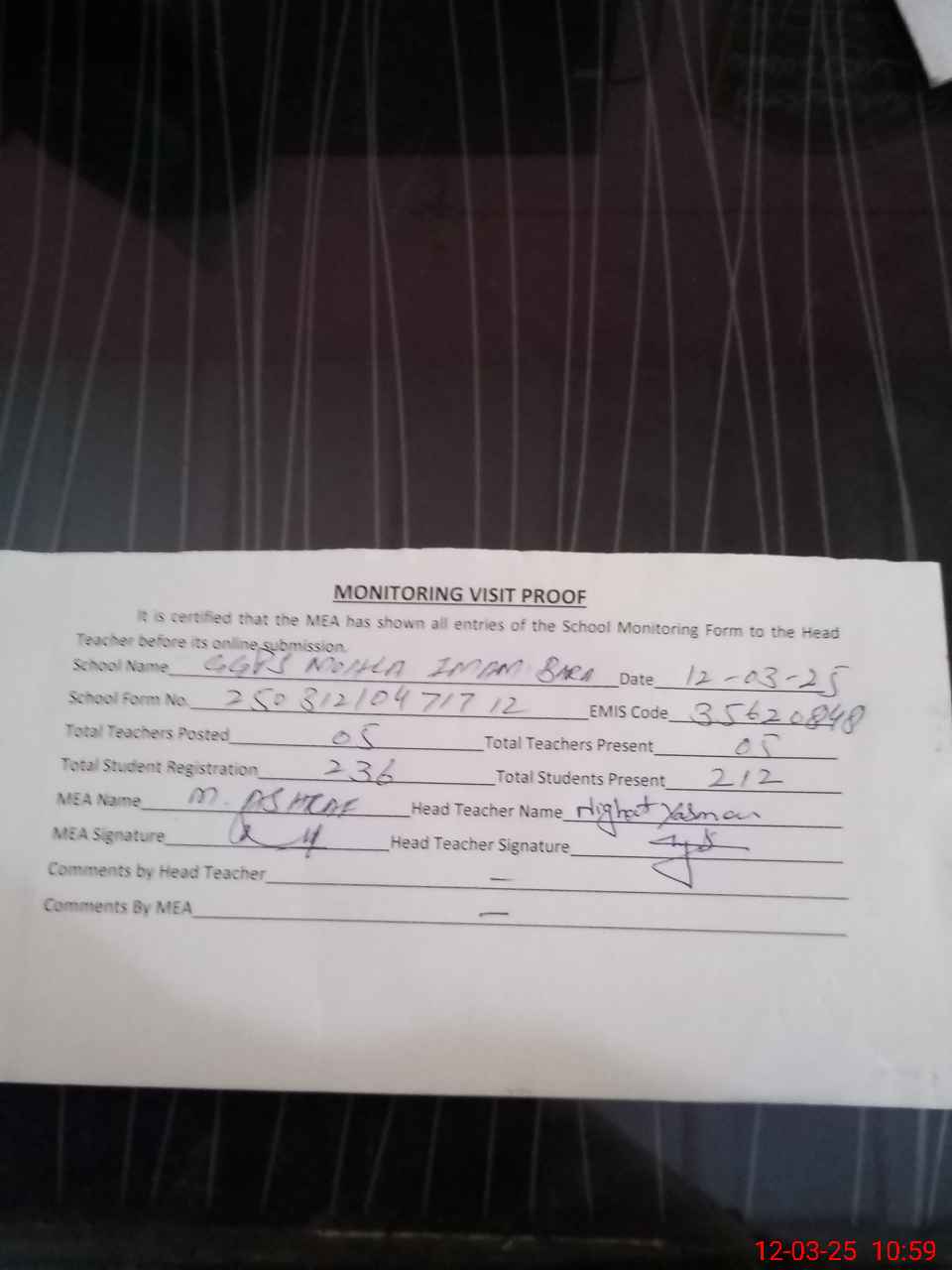 | EMIS Code: 35620848 | Name of School: GGPS MOH IMAM BARA | |||