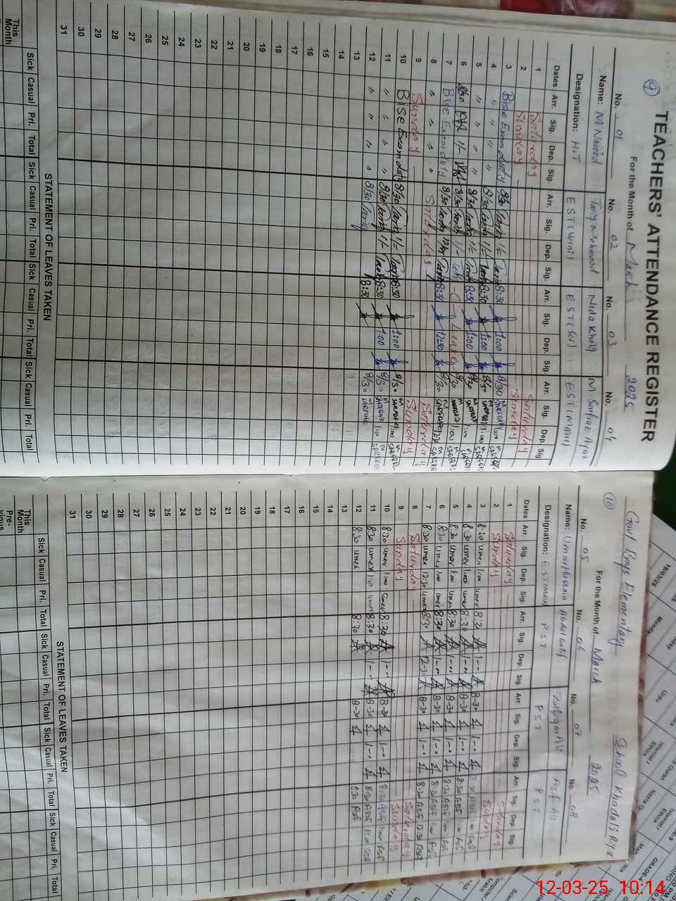 | 31**** | Mu**** Na**** | 6 | 2 | 0 | 0 | 0 | 0 | 0 | 0 | 0 | 0 | 0 | Exam Duty |