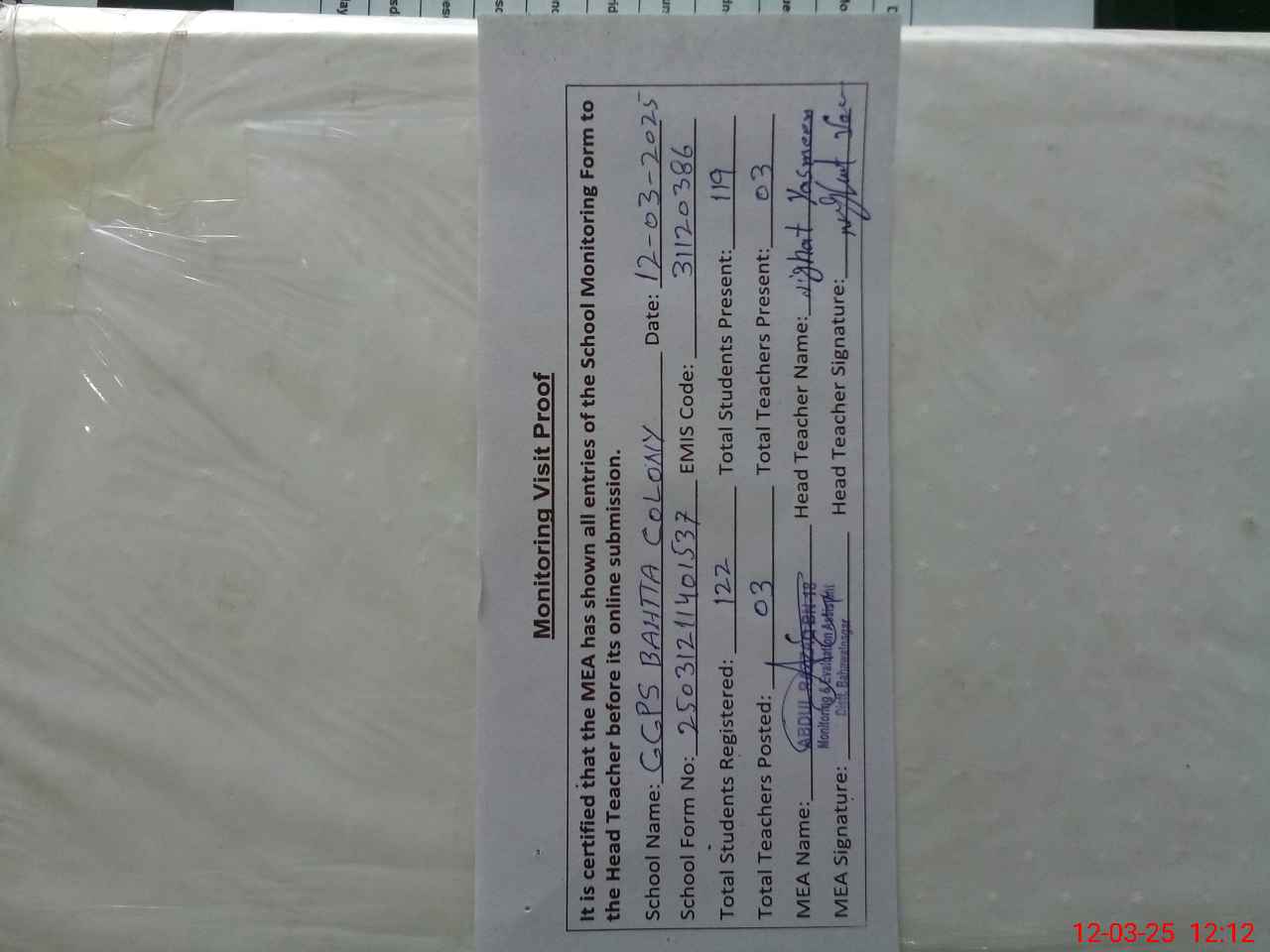 | EMIS Code: 31120386 | Name of School: GGPS BAHTTA COLONY | |||