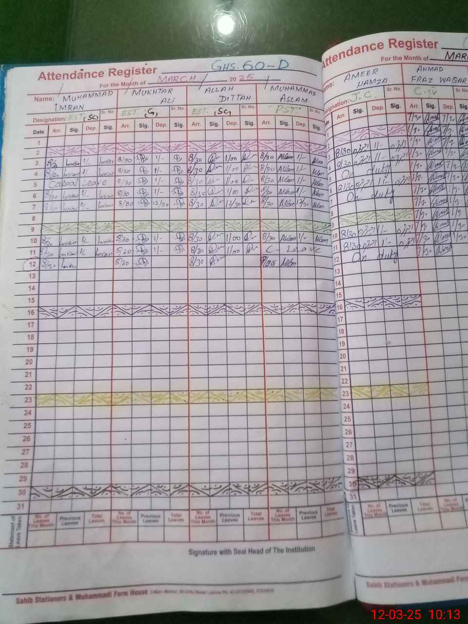 | 36**** | Mu**** Im**** | 3 | 1 | 0 | 0 | 0 | 0 | 0 | 0 | 0 | 0 | 0 | Absent (Un-Authorized) |