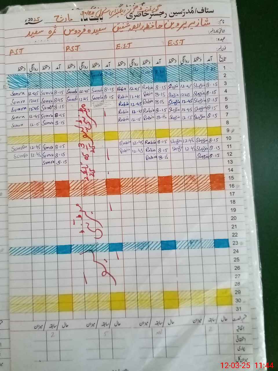| Name: SY**** SH**** NA**** Designation: (School Headmaster's/Headmistress's) SST (GENERAL) Phone/Cell Number: 03**** |