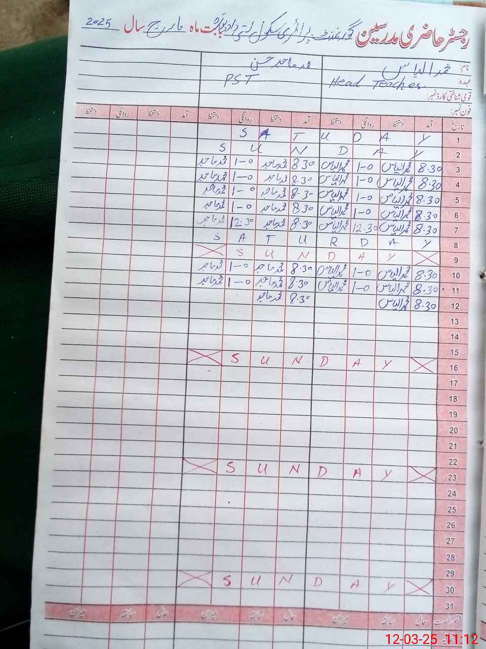 | Name: MU**** IL**** Designation: (School Headmaster's/Headmistress's) PST Phone/Cell Number: 03**** |