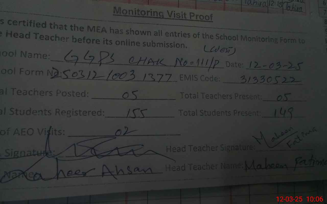 | EMIS Code: 31330522 | Name of School: GGPS MC CHAK NO.111/P GHARBI | |||